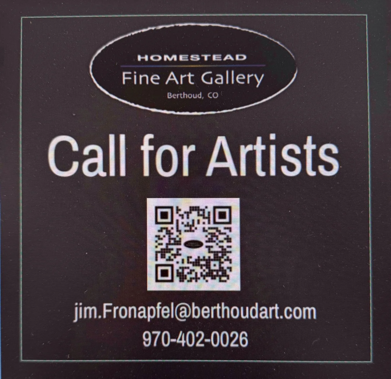 Homestead Fine Art Gallery is located on Mountain Ave. in downtown Berthoud. Visit us in person to see our beautiful 2-D and 3-D artworks, including: oil, acrylic, pastel & watercolor paintings, jewelry, 3-D leather art, photography, ceramics, calligraphy, woodworking, fiber art, and more.